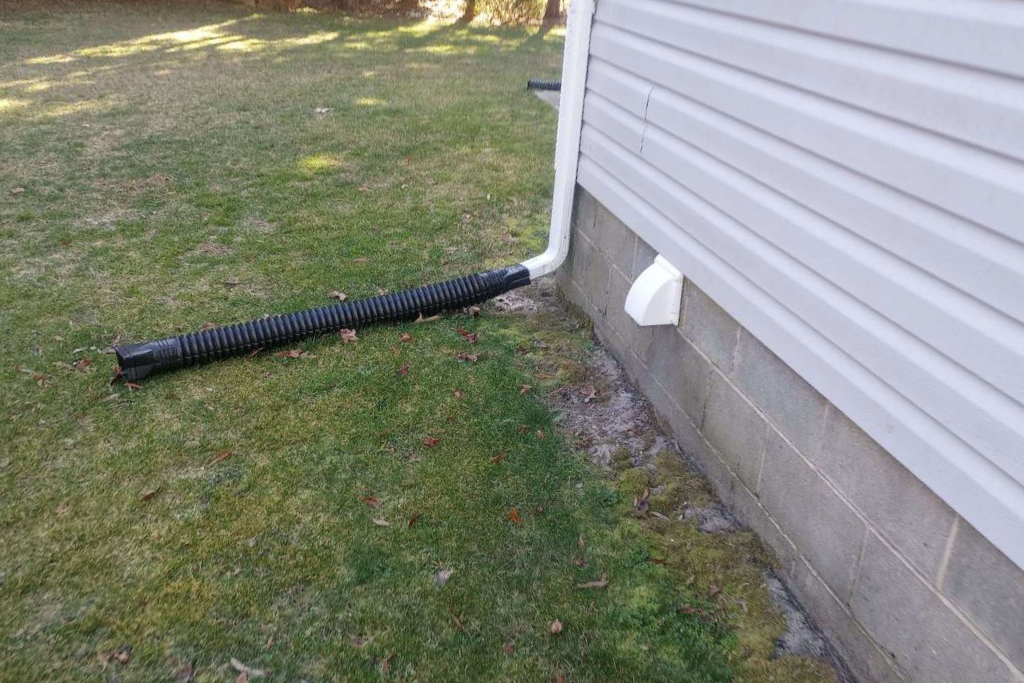As part of our comprehensive crawlspace services, we addressed a concerning issue observed in one of the photos: moisture accumulation on an interior foundation wall. To mitigate this problem, we extended the gutter downspouts below ground level. By directing rainwater away from the foundation, this solution effectively prevents water pooling and potential moisture intrusion into the crawlspace. Not only does this safeguard the structural integrity of the home, but it also enhances its overall moisture management system. Plus, by opting for an underground extension, we ensure a discreet and aesthetically pleasing solution for managing rainwater runoff.