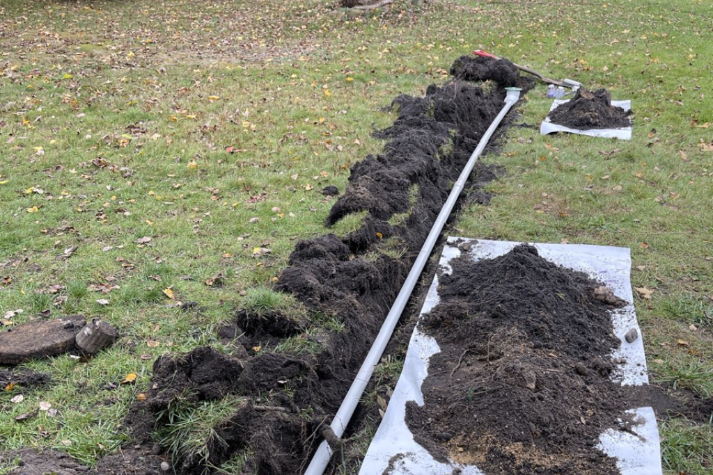 - Installation of a ½ HP Zoeller sump pump and extension of the drain pipe underground.