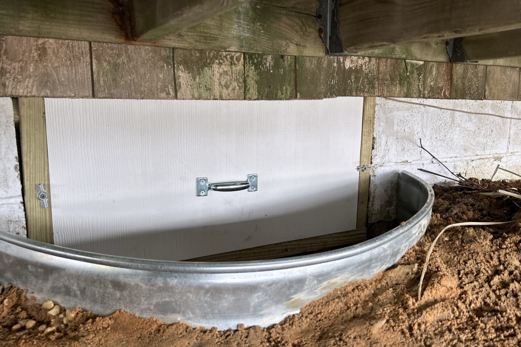 • Installed a PVC synthetic crawlspace door, and door cover.