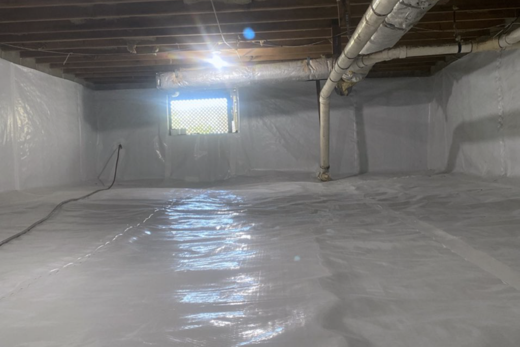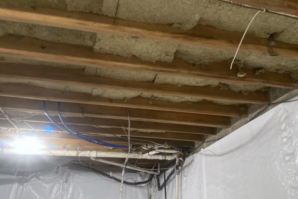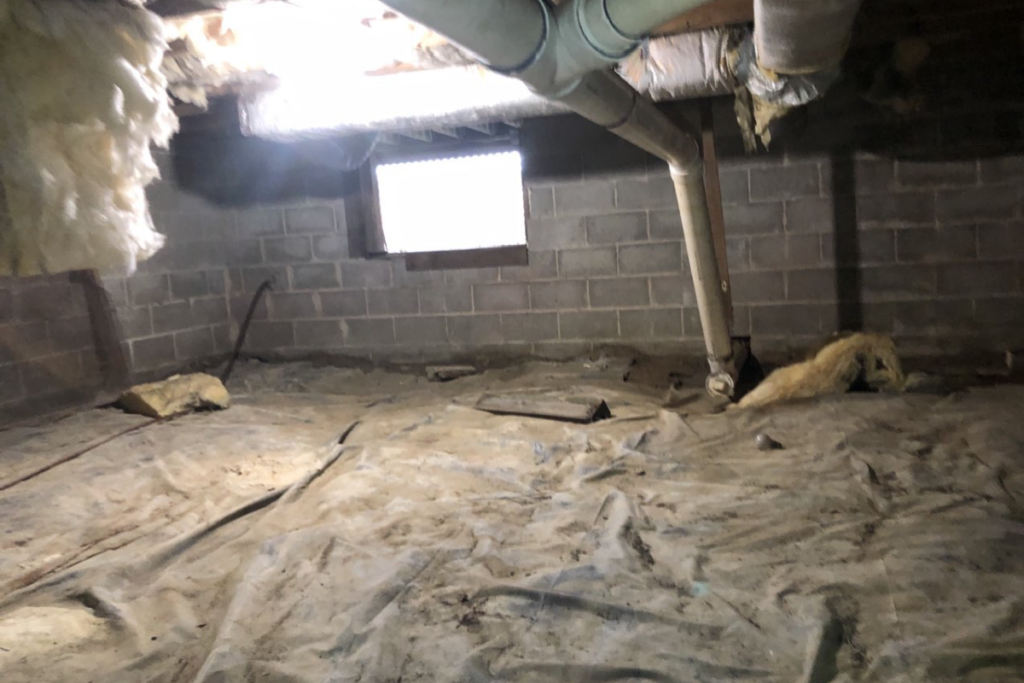 - A ground cleanout to remove debris, old floor insulation, and the existing vapor barrier.