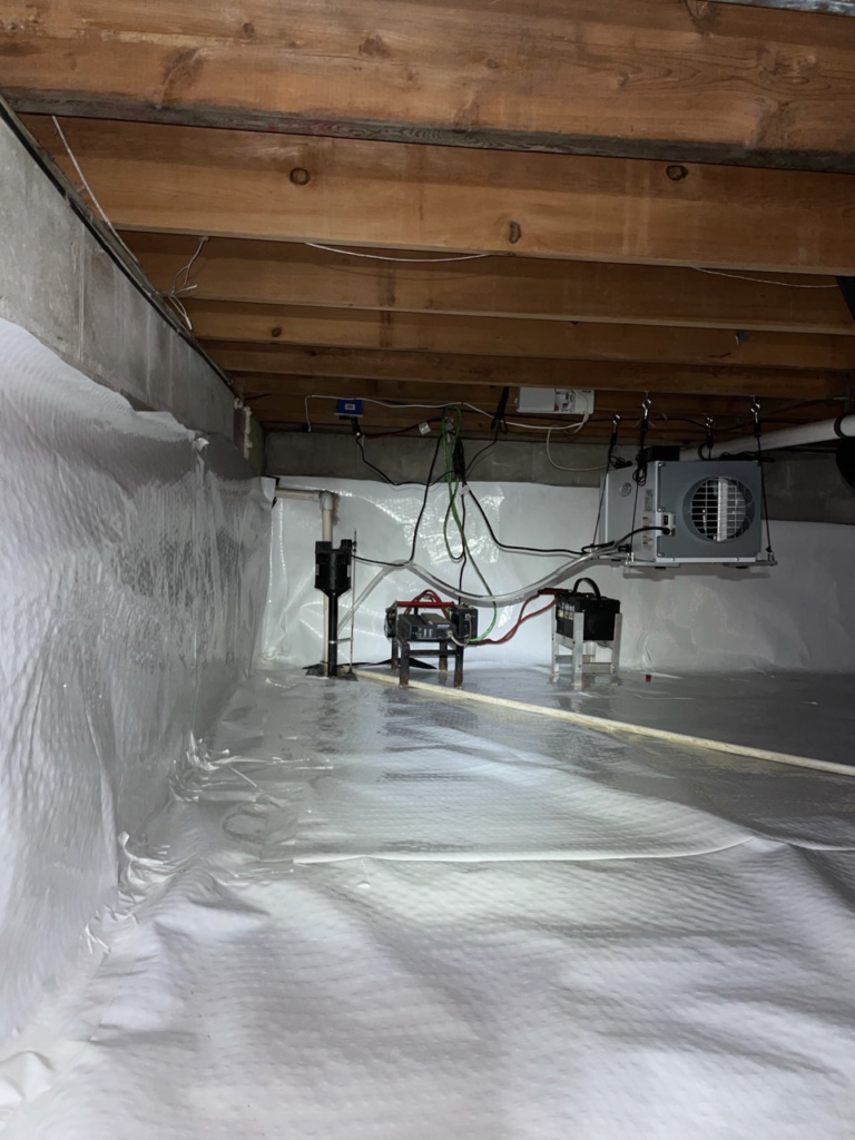 • Installed a 12-mil string reinforced vapor barrier on the floors traveling up 3-6” up the foundation walls.