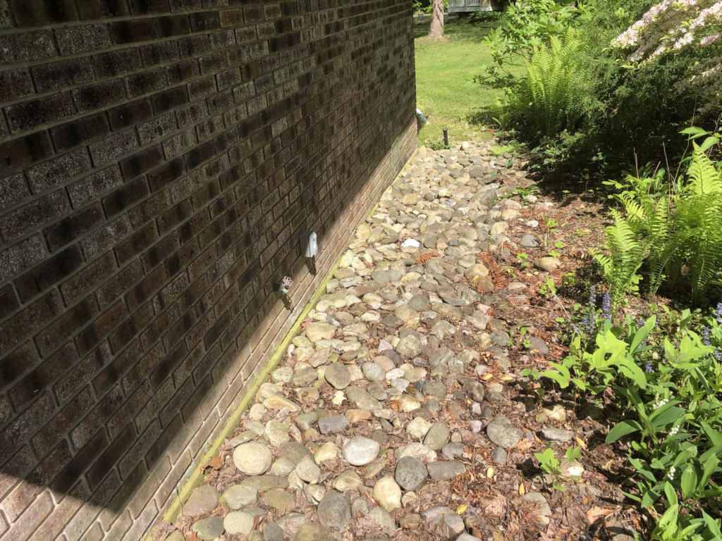 - Installed an exterior French drain system incorporating catch basins and existing gutter downspouts.